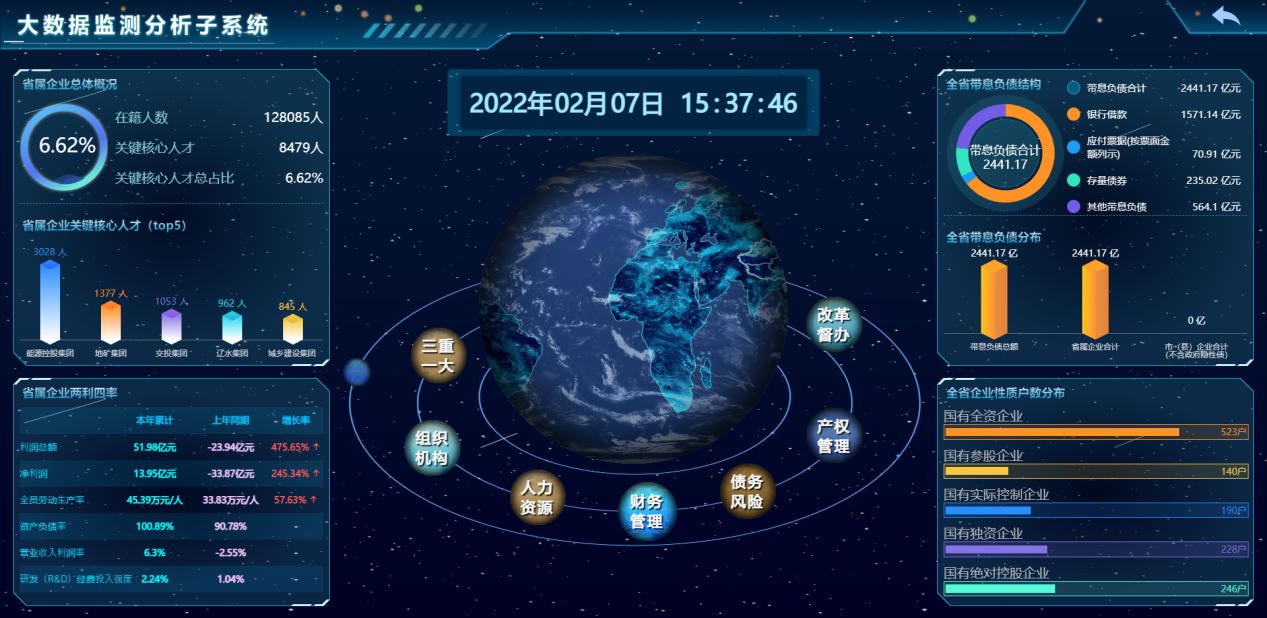 辽宁国资国企在线监管服务平台作为省国����� �������Ƴ������������ �������Ƴ������������ �������Ƴ����������� �������Ƴ�������资委数字化转型的“第一枪”,落实完成了省政府关于����� �������Ƴ������������ �������Ƴ������������ �������Ƴ����������� �������Ƴ�������省属企业“三重一大”决策和运行数字化监管的要求,����� �������Ƴ������������ �������Ƴ������������ �������Ƴ������������ �������Ƴ�������实现了省属企业人力资源全周期管理功能,����� �������Ƴ������������ �������Ƴ������������ �������Ƴ����������� �������Ƴ�������解决了国资监管数据不统一、统计不及����� �������Ƴ������������ �������Ƴ������������ �������Ƴ������������ �������Ƴ�������时、不共享的难题。该平台包括“一平台、三系统、七����� �������Ƴ������������ �������Ƴ������������ �������Ƴ������������ �������Ƴ�������模块”,即依托交投集团数据中心搭建了����� �������Ƴ������������ �������Ƴ������������ �������Ƴ������������ �������Ƴ�������符合信创环境的运行平台(“一平台”)����� �������Ƴ������������ �������Ƴ������������ �������Ƴ������������ �������Ƴ�������,自主开发完成了企业填报系统、组织机构管理系����� �������Ƴ����������� �������Ƴ������������ �������Ƴ����������� �������Ƴ�������统和大数据监测分析系统(“三系统”);实����� �������Ƴ������������ �������Ƴ������������ �������Ƴ������������ �������Ƴ�������现了人力资源模块、财务管理模块、债务监管模块����� �������Ƴ������������ �������Ƴ������������ �������Ƴ������������ �������Ƴ�������、“三重一大”决策和运行模块、产权管����� �������Ƴ������������ �������Ƴ������������ �������Ƴ������������ �������Ƴ�������理模块的开发与应用,集成了大额资金流转与改革督����� �������Ƴ����������� �������Ƴ������������ �������Ƴ������������ �������Ƴ������办模块(“七模块”)。通过规范化、标����� �������Ƴ������������ �������Ƴ������������ �������Ƴ������������ �������Ƴ�������准化的数据采集体系,将国资监管数据集����� �������Ƴ����������� �������Ƴ������������ �������Ƴ������������ �������Ƴ�������中管理与统一分析,有利于防范企业风险����� �������Ƴ������������ �������Ƴ������������ �������Ƴ������������ �������Ƴ�������,实现国有资产保值增值,显著提升监管水平。